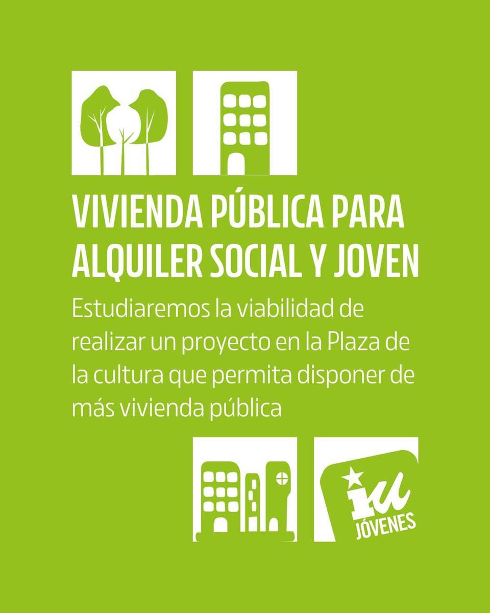 En materia de vivienda, la coalición aboga por estudiar la viabilidad de un proyecto en la Plaza de la Cultura que genere más vivienda pública, rehabilitar parte de la Casa Riaza para ofrecer una solución al problema de acceso al hogar e impulsar medidas contra las viviendas vacías.