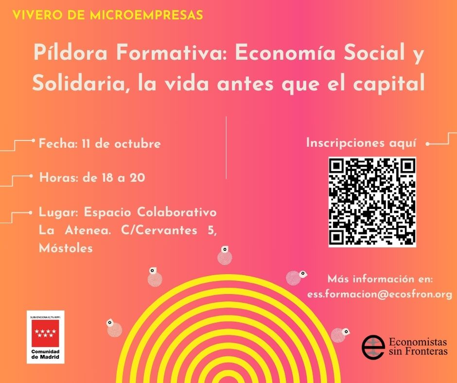 ¿Conoces en qué consiste el concepto de Economía Social y Solidaria? Si quieres saber más sobre este modelo económico, que pone la vida en el centro, así como la manera de aplicarlo en el día a día, Economistas sin Fronteras te invita a una nueva píldora formativa que tendrá lugar el próximo 11 de octubre a las 18 horas en el Espacio Colaborativo La Atenea, situado en el número 5 de la calle Cervantes.