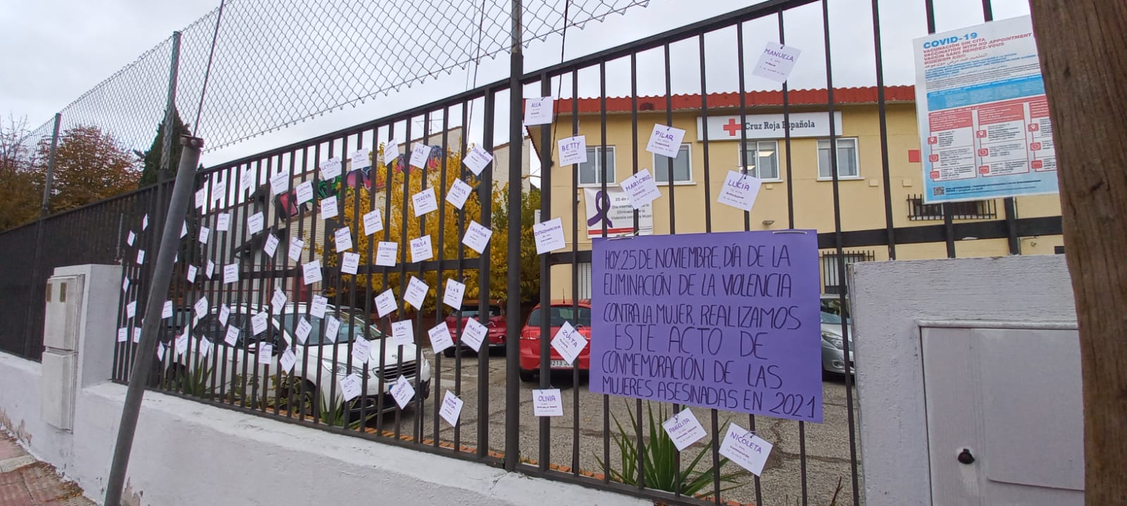 Ese mismo día se realizó una actividad de sensibilización en calle, con la colocación, en la puerta de la asamblea, de carteles con los nombres de las mujeres asesinadas por violencia de género durante 2021.