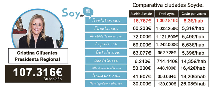 Desde Soyde. hemos hecho un análisis de los sueldos de nuestros políticos locales, calculando el total del gasto municipal y lo que pagamos cada mostoleño al año por que dirijan y gestionen nuestra ciudad. En esta infografía podréis encontrar lo que cobran nuestros dirigentes, todas las personas que participan de las decisiones de nuestro municipio sea como Equipo de Gobierno o dentro de la oposición. Nos parezca mucho o poco no nos toca juzgarlo a nosotros, os toca a vosotros.
