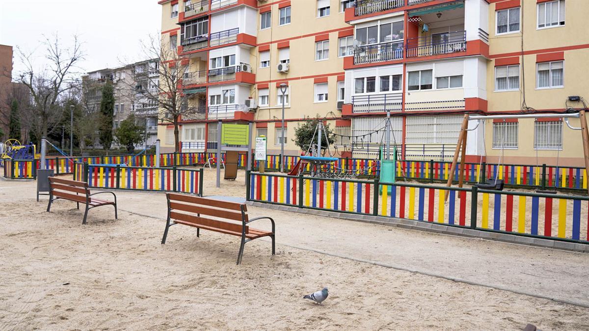 Móstoles cuenta ya con otro nuevo espacio infantil renovado para el uso y disfrute de los peques de la localidad. Situado en la zona comprendida entre las calles Badajoz y Libertad, dispone de un balancín, dos columpios, tres toboganes y un elemento multijuego con una cesta nido y una pasarela colgante, los cuales permiten el desarrollo físico y cognitivo de los usuarios.