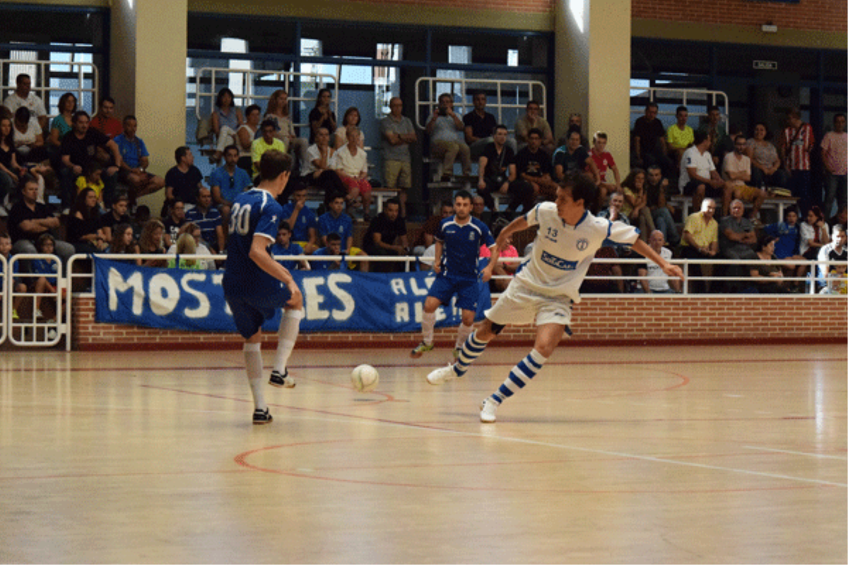El partido comenzó con los visitantes no aprovechando sus oportunidades ante el marco rival y con un conjunto colegial que, con su juego de cinco constante, ahogaba al rival, sin dejarle pensar y creaba mucho peligro, bien salvado por el portero mostoleño y por la madera del palo derecho, que evito el tanto local hasta en tres ocasiones durante los primeros veinte minutos.