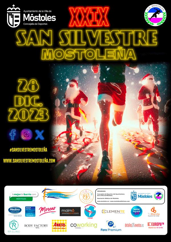 El próximo 28 de diciembre, las calles de la ciudad serán el escenario de la XXIX edición de la tradicional carrera popular San Silvestre Mostoleña, evento deportivo navideño en el que participarán 1.500 corredores. En este sentido, cabe destacar que, en su apuesta por "impulsar y fomentar los hábitos de vida saludable y la actividad deportiva", el Ayuntamiento de Móstoles, a través de la Concejalía de Deportes, ha incrementado el montante económico global de los premios para esta prueba en 1.200 euros.