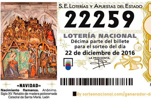 El número 22.259 ha traído la suerte a nuestro municipio, siendo agraciado con un Quinto Premio, nada más y nada menos que con 60.000 euros a la serie y 6.000 euros al décimo.