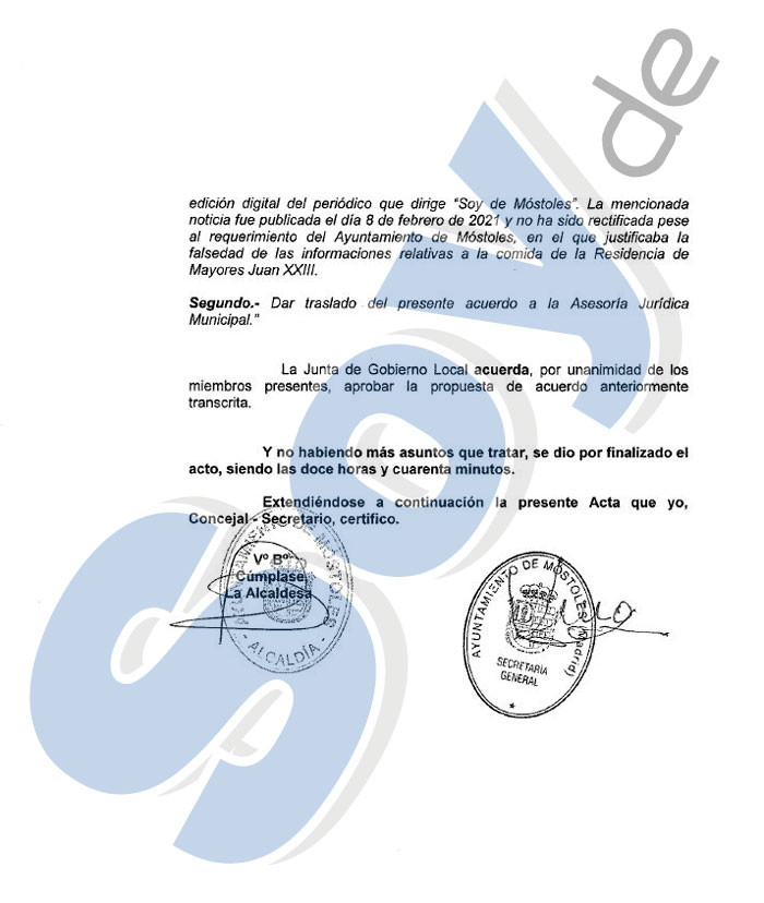 Soyde. ha tenido acceso al extracto de la Junta de Gobierno Local celebrada la pasada semana