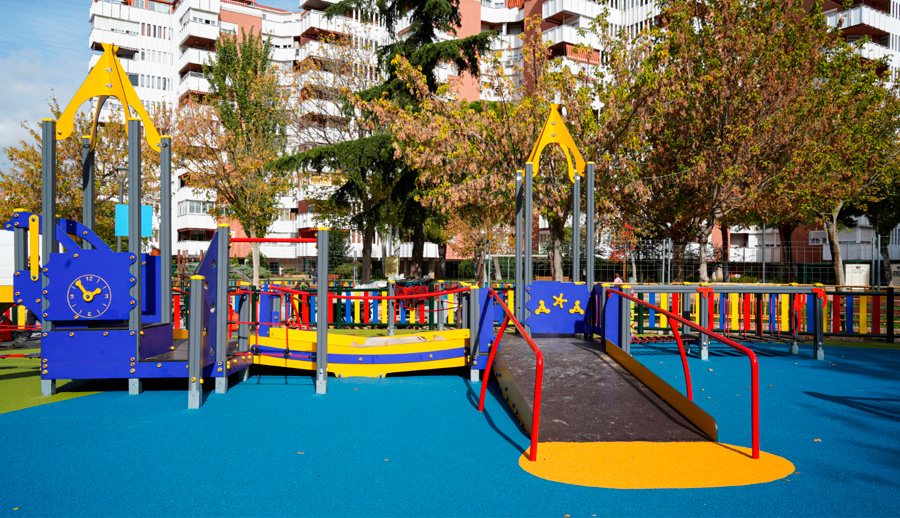 Se trata de un espacio accesible y seguro para que los menores puedan entrar, salir y moverse de forma segura. Asimismo, es un parque adaptado inclusivo para que niñas y niños con y sin discapacidad se diviertan juntos. Tendrá un pavimento de seguridad de caucho continuo, que se considera el único material completamente accesible para permitir el acceso de niños y niñas con algún tipo de problema de movilidad. El perímetro del área estará delimitado por una valla metálica de colores, con un acceso con rampa desde el camino hasta el área infantil.
