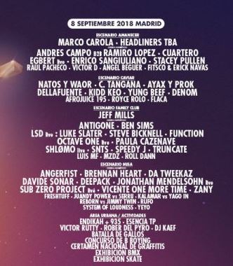 Un festival que, pese a desarrollarse en tan sólo un día, se ha convertido en una cita indispensable dentro de los festivales a nivel regional. Este año encontramos a artistas como Marco Carola, Headline TBA, Natos y Waor, Ayax y Prok, Jeff Mills o Sub Zero Proyect entre otros. Además, como parte de una dinámica cada vez más presente en los festivales actuales, también se realizará un concurso de graffitis a nivel nacional.