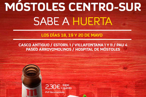 18, 19 y 20 de Mayo con la temática “Móstoles Centro- Sur Sabe a Huerta” contará con la participación de 22 hosteleros barrios de Casco Antiguo, Estoril I, Villafontana I y II, PAU IV, Paseo Arroyomolinos y Hospital de Móstoles y el