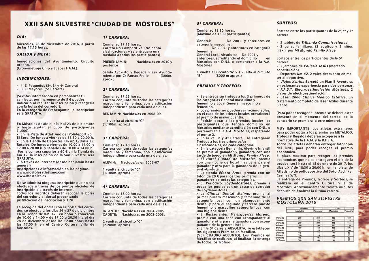 Como ya es tradición, nuestro municipio cerrará el año 2016 con deporte y mucha diversión. La San Silvestre mostoleña cumple su vigésima segunda edición y lo hará con muchas sorpresas, premios y distintos sorteos.