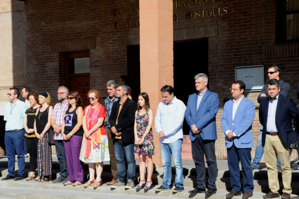 La Corporación Municipal del Ayuntamiento de Móstoles ha guardado un minuto de silencio, en la fachada del edificio.