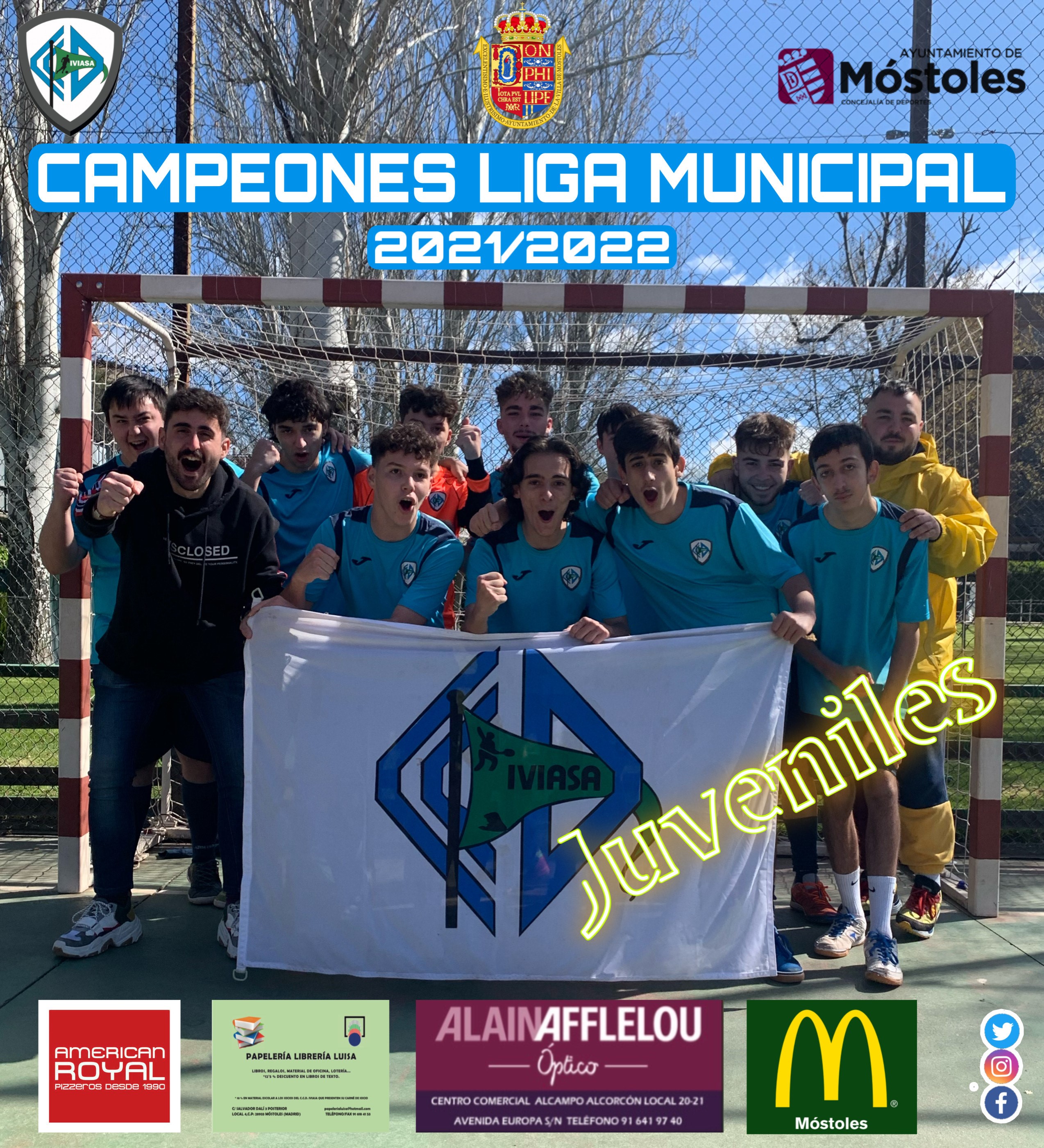 Los juveniles del Club Cultural Deportivo Iviasa se han proclamado campeones de la Liga Municipal de Móstoles, tras la victoria por 1-0 (gol de Nano ) al ADA Parque Lisboa 2000 fs de Alcorcón. Los de Victor Zamora y Roberto García culminan así una gran temporada en una Liga muy competida, que se ha adjudicado el equipo de Iviasa en la última jornada ante su afición.