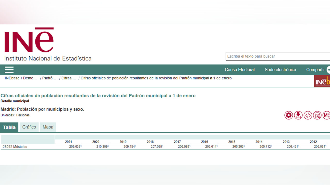 Según los datos que obran en poder del Instituto Nacional de Estadística (INE), y una vez que dichos datos han sido contrastados y ofrecidos según el Real Decreto que todos los años por estas fechas sale publicado en el Boletín Oficial del Estado (BOE), la población total de Móstoles a día 1 de enero de 2021 es de 209.639 habitantes. Esto supone una disminución de 670 habitantes respecto a los datos del mismo día del año 2020, cuando la población total era de 210.309 habitantes, siendo ese día el máximo histórico de habitantes en la localidad. Estos datos surten efectos oficiales desde hoy mismo, día 31 de diciembre.
