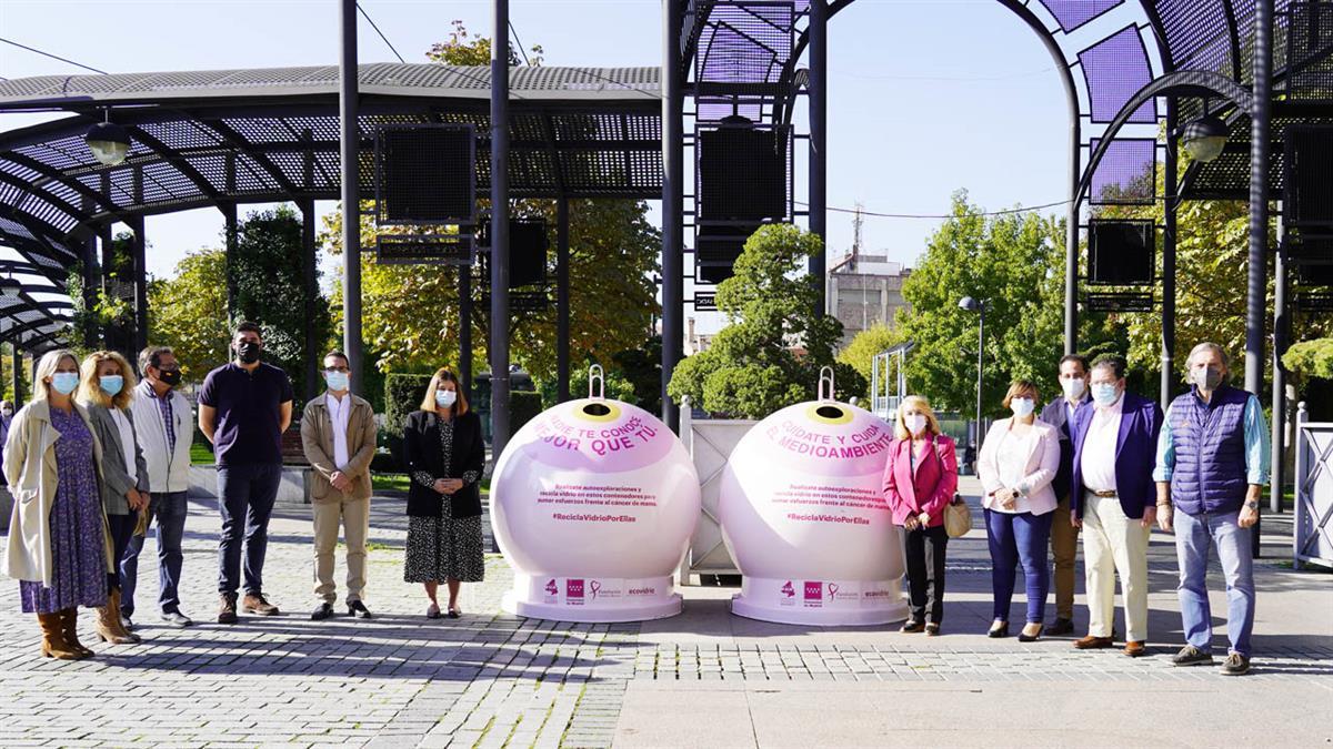 Por cada kilo de vidrio recogido en los dos contenedores de color rosa instalados en la Plaza de Pradillo, la empresa encargada de la gestión del reciclado de residuos de envases en España, donará fondos a la Fundación Sandra Ibarra. La campaña, que se pone en marcha con motivo del Día Mundial Contra el Cáncer de Mama que se celebra el 19 de octubre, ha sido presentada esta mañana por la Alcaldesa de Móstoles, Noelia Posse, acompañada por Ricardo Sevilla, el gerente de zona de Ecovidrio, el Concejal de Empleo y Nuevas Tecnología por designación temporal y responsable del área de residuos, David Muñoz, la Concejala de Presidencia y Desarrollo Urbano, Marisa Ruiz, el Concejal de Cultura, Alejandro Martín, la Concejala de Igualdad, Lola Triviño, y varios concejales de la Corporación.
