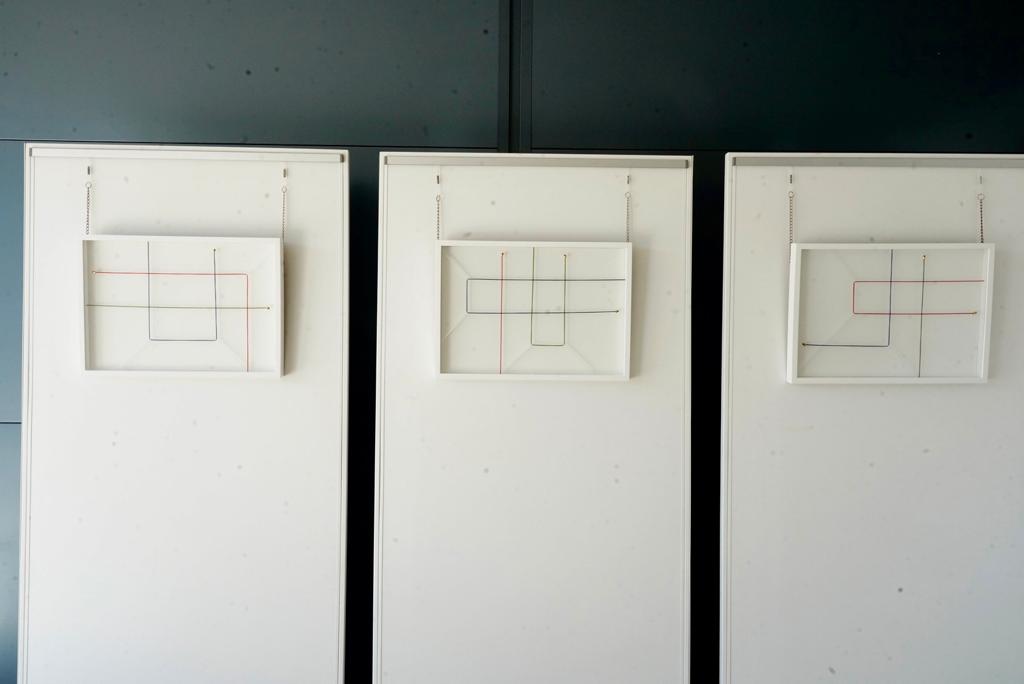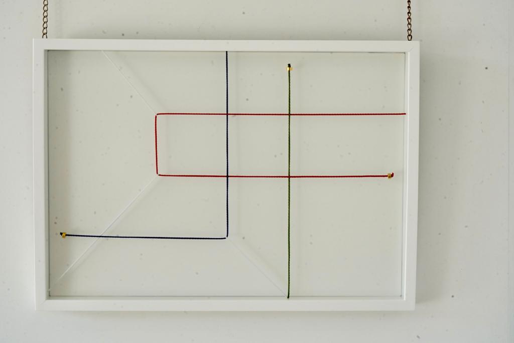 El elemento principal de sus estudios y composiciones es la línea de hilo rojo y la luz. Sus trabajos se basan en un juego de líneas en constante tensión, mantenida mediante imanes de neodimio (los más fuertes y resistentes) bañados en oro.