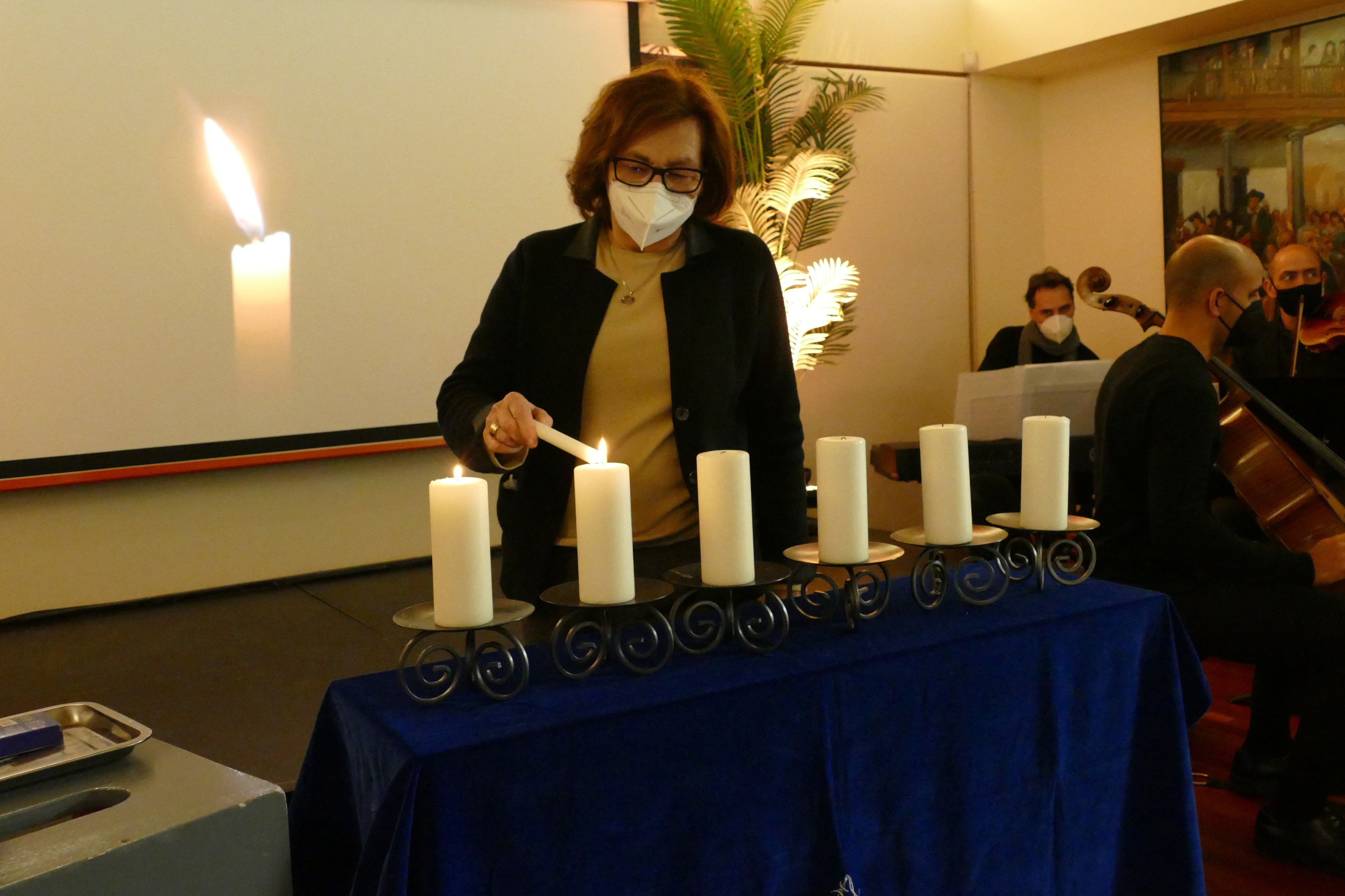 En un acto marcado por el silencio y la música del conservatorio Rodolfo Halfter, se ha procedido al encendido de una vela blanca en memoria de los seis millones de judíos asesinados en guetos, persecuciones y campos de concentración; una segunda en memoria del millón de niños judíos asesinados por los nazis; la tercera en honor a las minorías que padecieron la represión nazi (gitanos, personas con discapacidad, homosexuales, Testigos de Jehová, republicanos españoles y otros colectivos); la cuarta por los Justos de las Naciones y aquellos que pusieron en riesgo su vida para salvar a miles de perseguidos; la quinta por los supervivientes y una última contra el olvido, han centrado la emotiva conmemoración.