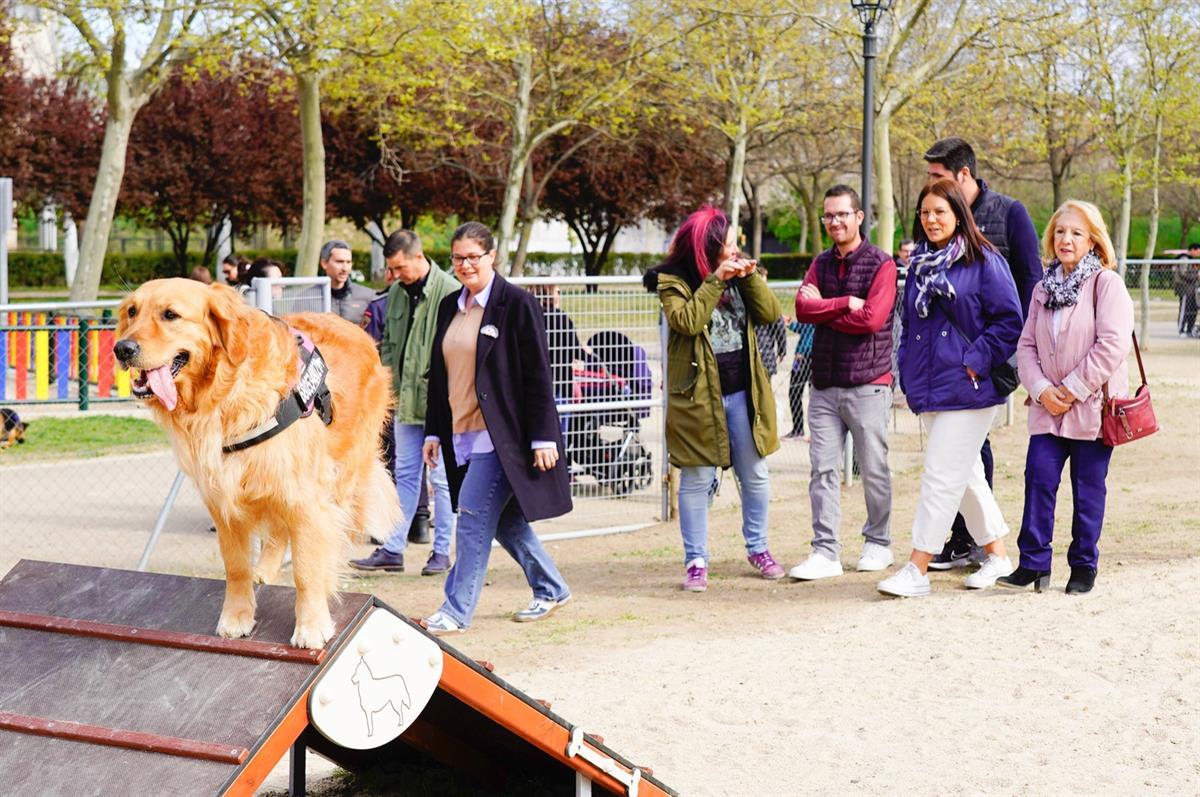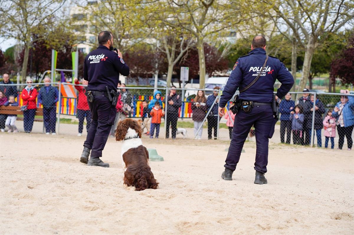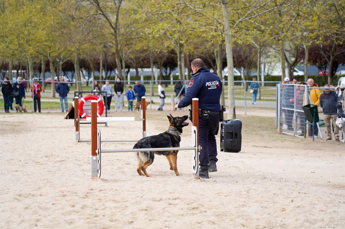 Para dar a conocer los circuitos de agilidad para perros que el ayuntamiento ha habilitado en diferentes áreas caninas de Móstoles, los agentes de la Unidad Canina de la Policía Municipal de Móstoles han realizado una exhibición de cómo se pueden usar estos espacios.