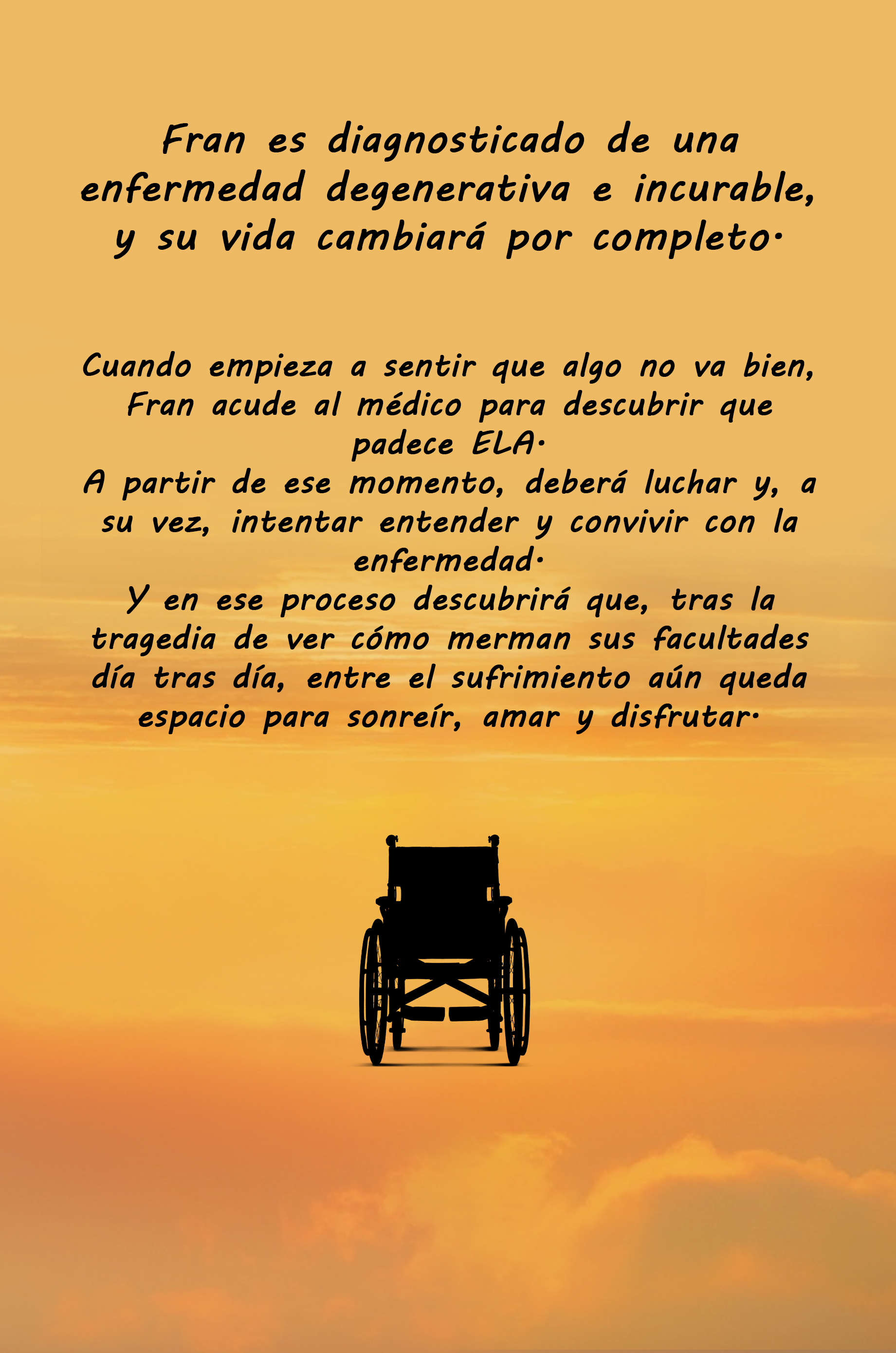 La novela engancha desde la primera frase. Se torna placentera y entretenida a pesar de la dureza del relato, con personajes que dan vida, envuelven y acompañan el sufrimiento de Fran. El libro, además, se ofrece como una herramienta importante para visibilizar la ELA, esa enfermedad neurodegenerativa que provoca que los músculos dejen de funcionar de manera progresiva, hasta alcanzar la parálisis y la muerte del paciente.