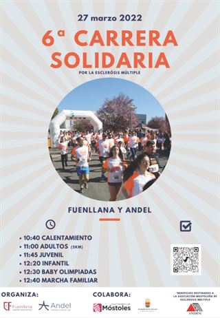 La ciudad de Móstoles recoge este año la VI Carrera solidaria por la Esclerosis Múltiple. Una carrera organizada por las Asociaciones de Madres y Padres del Centro Educativo Fuenllana y del Colegio Andel y focalizada en todos los participante que deseen apoyar la causa.