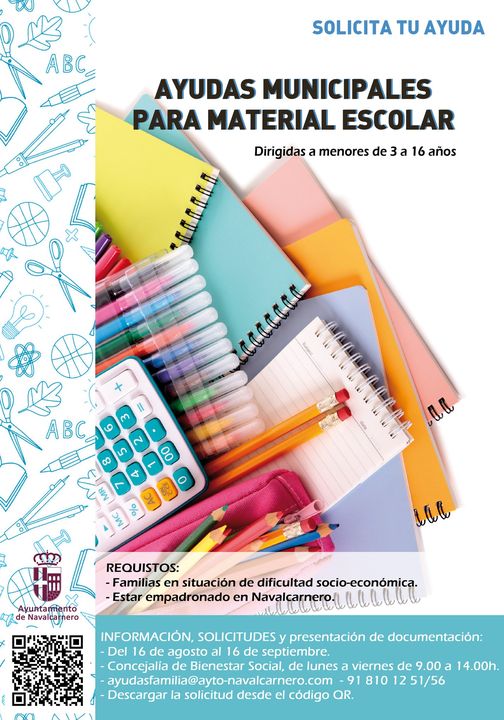NAVALCARNERO | Abre el plazo de ayudas para material escolar