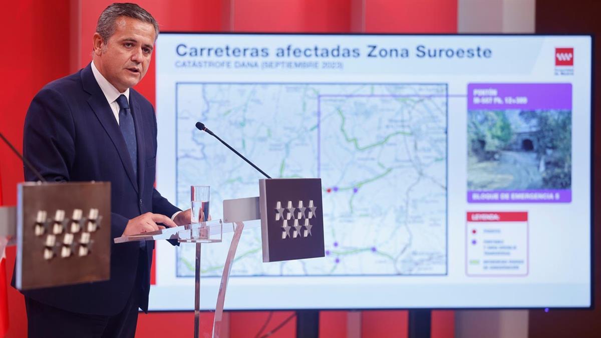 Así lo ha detallado este miércoles el consejero de Vivienda, Transportes e Infraestructuras, Jorge Rodrigo, en su comparecencia tras la reunión celebrada por el Consejo de Gobierno. En este sentido, ha precisado que ya se está trabajando sobre el terreno para reponer cuanto antes las infraestructuras públicas azotadas por las lluvias torrenciales -algunas de ellas con categoría de bien patrimonial-, restablecer cuanto antes la normalidad circulatoria, mantener la seguridad viaria y garantizar el acceso a los núcleos de población afectados.