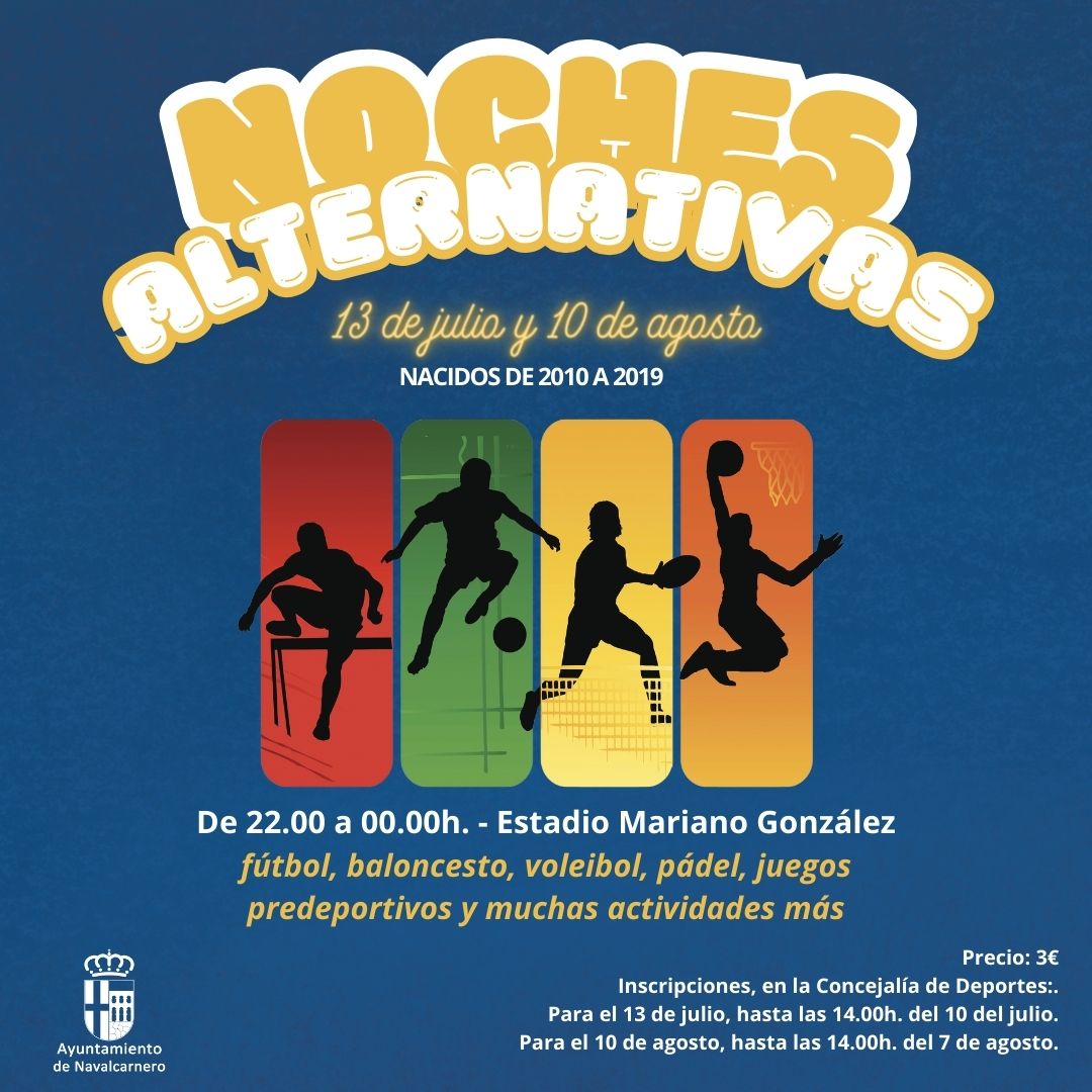 El Ayuntamiento de Navalcarnero ha organizado junto a la concejalía de Deportes un plan de ocio distinto y saludable para combatir las altas temperaturas y el aburrimiento del periodo estival. Durante las noches del 13 de julio y 10 de agosto, los jóvenes nacidos entre los años 2010 y 2019 podrán asistir al Estadio Mariano González para realizar todo tipo de actividades deportivas.