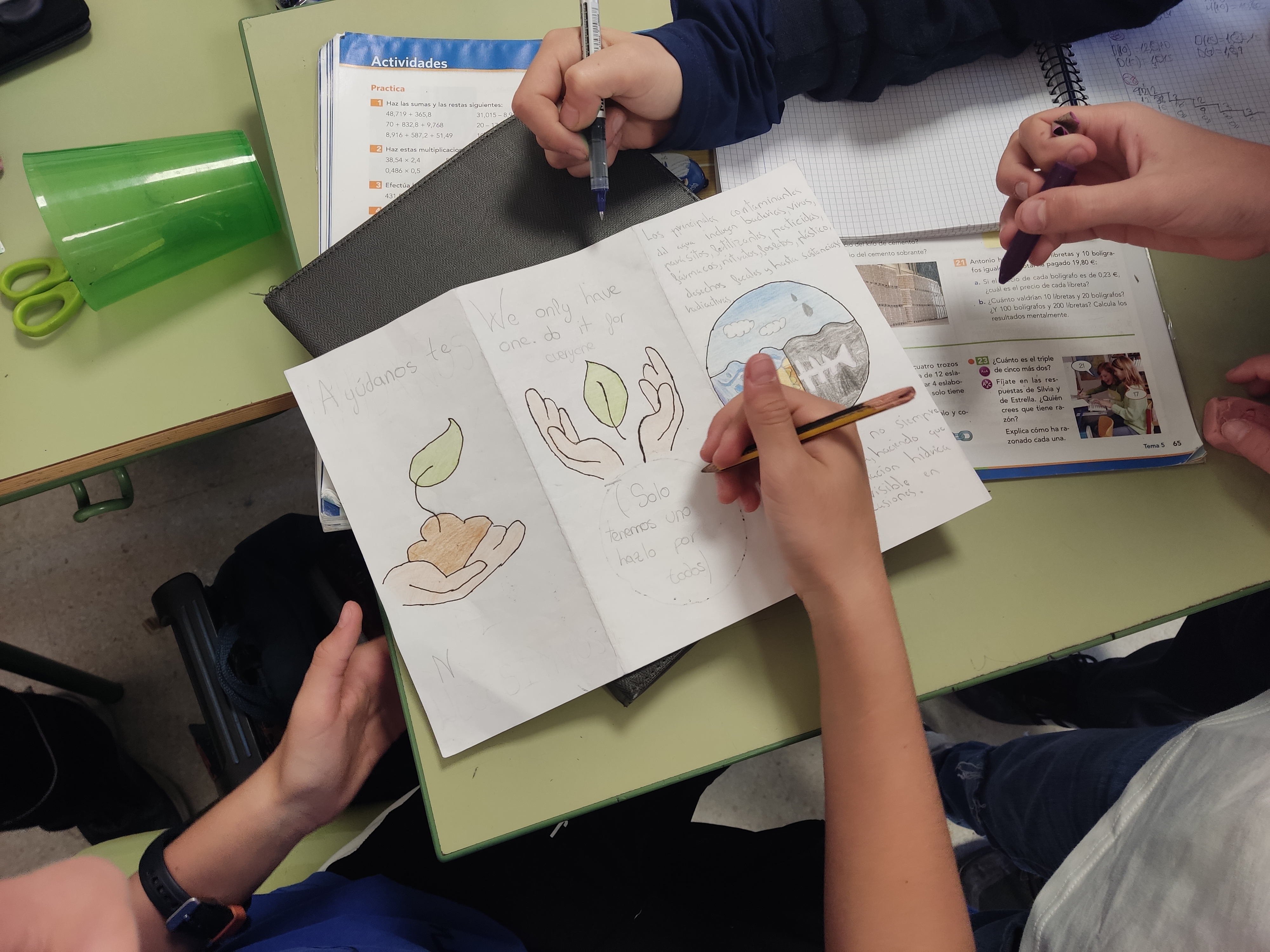 En este sentido, los estudiantes han elaborado, guiados por su tutor y tras una lluvia de ideas sobre posibles modos de modificar prácticas poco adecuadas, dos trípticos que debían recoger la problemática medioambiental presente en la sociedad, así como las posibles soluciones que se pueden llevar a cabo desde la ciudadanía para minimizar el impacto negativo de nuestras acciones en la naturaleza. Del mismo modo, se hará entrega de dicho folleto a la población de Navalcarnero, con la finalidad de difundir la necesidad de concienciación acerca de la situación actual en materia de contaminación y desechos, al tiempo que los alumnos explican de viva voz toda la información que han ido recopilando durante el proceso creativo.