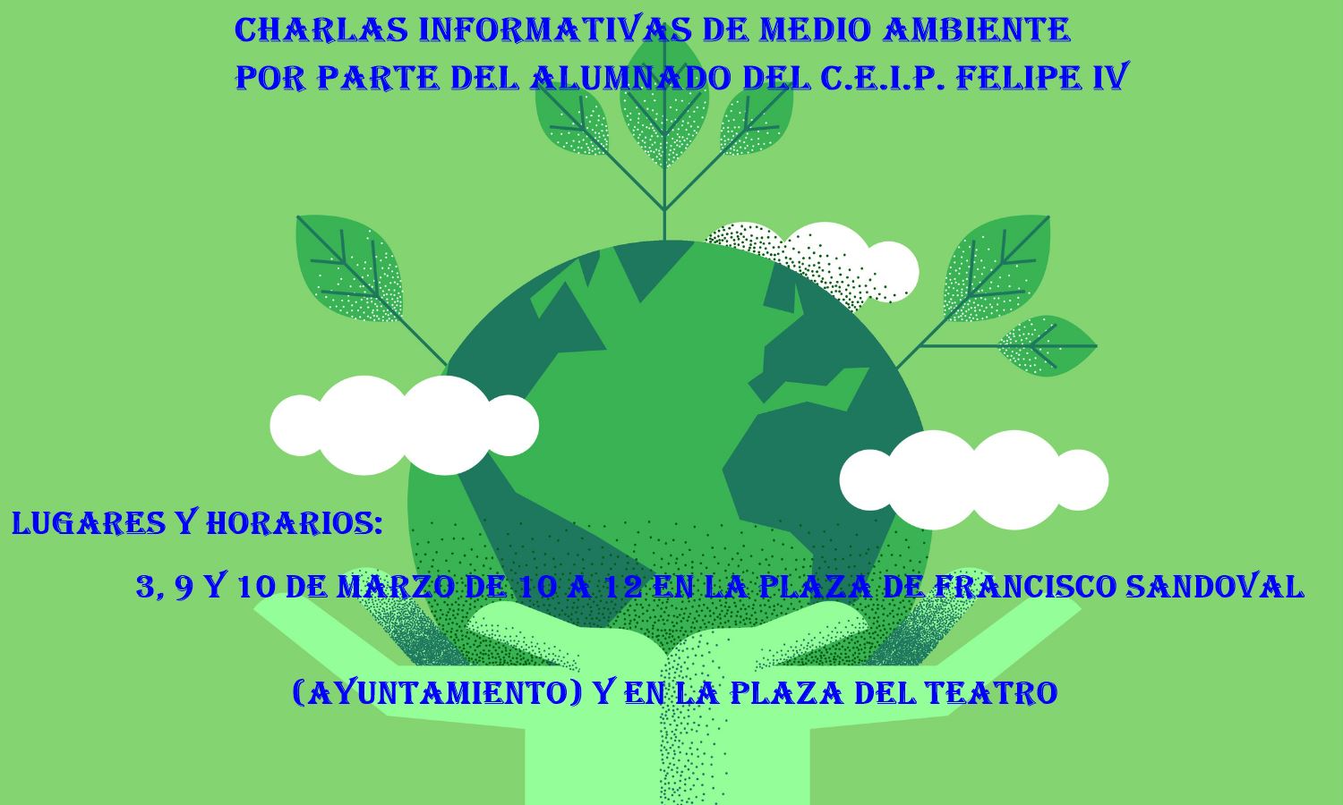 El CEIP Felipe IV vuelve a destacar, una vez más, por los proyectos desarrollados por Ernesto Santurino, maestro de Educación Física, destinados a promover hábitos saludables entre el alumnado. En este caso, el enfoque se dirige hacia la preservación de la salud del entorno, con el objetivo de salvar el planeta de las amenazas que ponen en peligro su futuro. Para ello, alumnos de 6º de Primaria desarrollan un proyecto cuyo objetivo es concienciar a toda la comunidad educativa y trasladar posteriormente dicha sensibilización a la población en general.