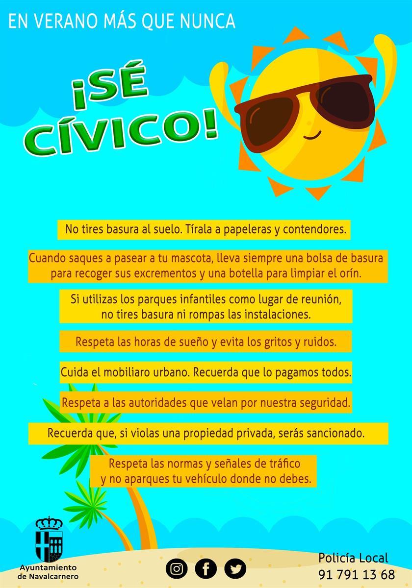Así, atendiendo a las palabras del propio Ayuntamiento de Navalcarnero, “en verano, más que nunca, sé cívico. Haz caso a estas siguientes recomendaciones y sé responsable”.