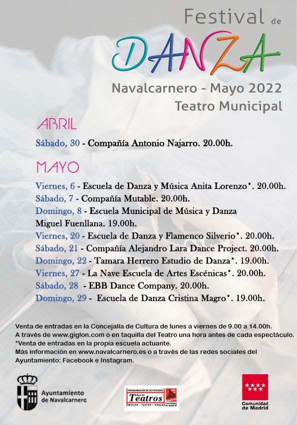 Este fin de semana llega cargado de actividades en la agenda cultural y deportiva organizada por el Ayuntamiento de Navalcarnero. Se podrá disfrutar de una gran variedad de programación, desde el ámbito cultural, con el Festival de Danza y las Sesiones Vermú, hasta deportiva, con las diversas competiciones de voleibol o ajedrez. El fin de semana dará comienzo con iniciativas para los niños, el viernes 6 de mayo, a las 17.30 horas en la Biblioteca Municipal, con el cuentacuentos ‘La Lana Lila’. Se trata de un taller sensorial impartido por Belén Chou y dirigido a menores de entre 1 y 3 años. Ese mismo día, a las 20.00 horas, el Teatro Centro volverá a abrir sus puertas para acoger el segundo fin de semana del Festival de Danza. La Escuela de Danza Anita Lorenzo ofrecerá un recital de baile flamenco, moderno y ballet clásico de diferentes niveles, todos ellos representados por las alumnas de su escuela. Las entradas para este espectáculo se pueden adquirir en la propia academia, ubicada en Avenida Arroyo Juncal con Pino Resinero, en horario de 17.30 a 20.30 horas, así como el día del espectáculo, en taquilla, una hora antes de la función.