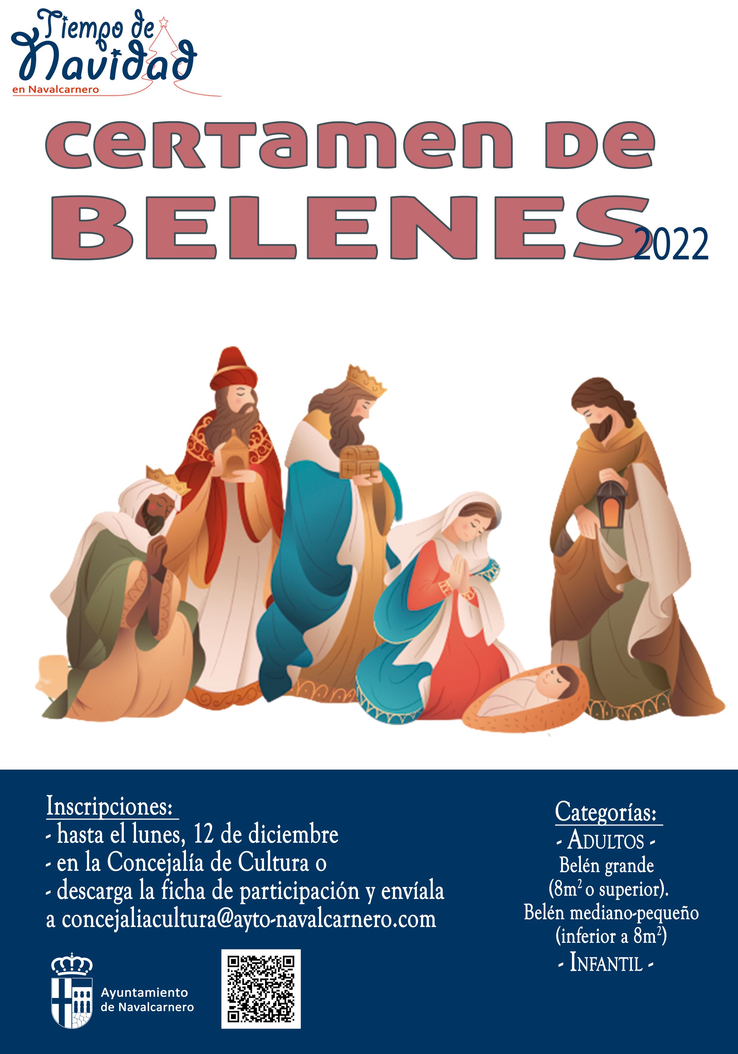 Por otro lado, el Certamen de Belenes, todo un clásico en esta población, cuenta ya con un amplio bagaje, y en él participa un gran número de vecinos en las categorías de infantil y adultos, dentro de la cual existen, además, dos modalidades: la de belén grande, de 8 metros cuadrados en adelante y la de mediano-pequeño, inferior a 8 metros cuadrados. La información y la ficha deberá enviarse a concejaliacultura@ayto-navalcarnero.com o presentarla en la Concejalía de Cultura, ubicada en la Plaza de Segovia, antes del 12 de diciembre. Las bases y las fichas de inscripción para estos concursos se pueden consultar en la web municipal.
