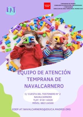 El equipo de atención temprana de Navalcarnero pone en marcha un nuevo curso, dirigido a pequeños de hasta 6 años de edad con patologías instauradas del tipo metabolopatías, alteraciones genéticas, problemas motóricos, malformaciones craneales, autismo y otros trastornos atípicos. Un equipo formado por dos orientadores y una maestra especialista en pedagogía terapéutica atiende a los niños de ese rango de edad, tanto los no escolarizados como los escolarizados en las Escuelas Infantiles públicas y privadas, Casas de Niños y colegios concertados y privados de Navalcarnero, Sevilla La Nueva, Arroyomolinos, Moraleja de Enmedio, El Álamo y Villamanta.