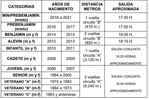 Las inscripciones son gratuitas para todas las categorías, salvo senior y veteranos, para las que tiene un coste de 7 euros