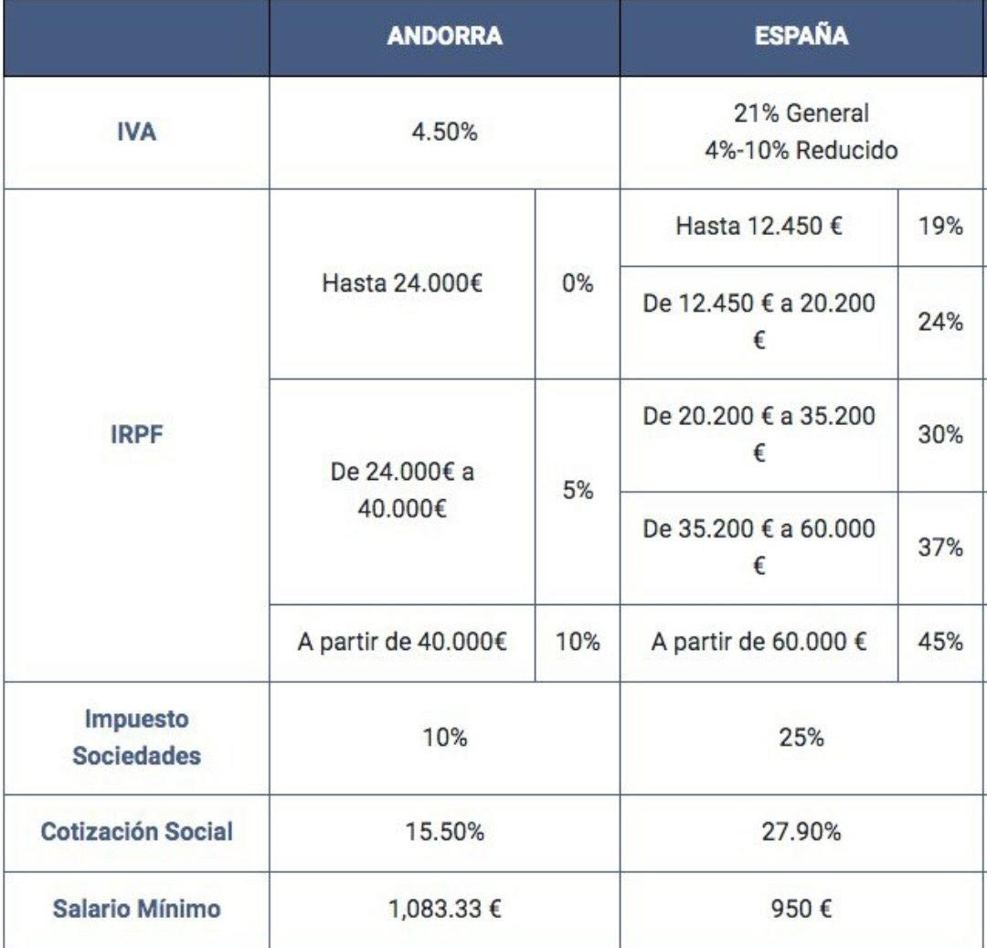 En contraposición, nuestro vecino del principado cuenta con un máximo de IRPF DEL 10%, un IVA (IGI) del 4,5%, donde el Impuesto sobre sociedades no supera el 10% y donde las cotizaciones sociales son del 15%.