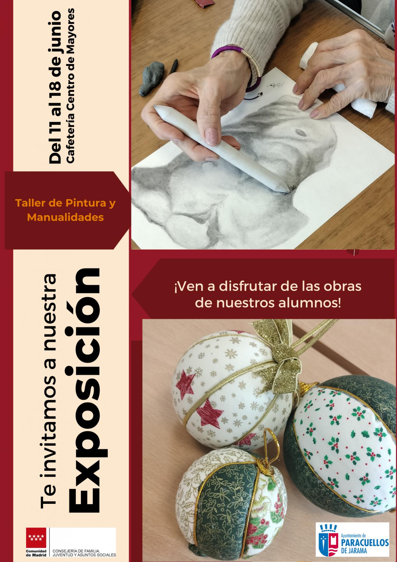 La concejalía de Mayores del Ayuntamiento de Paracuellos de Jarama ofrece, del 11 al 18 de junio, una exposición de los alumnos de los talleres de dibujo y manualidades, en la cafetería del Centro de Mayores, situado en la calle Algete,7. La inauguración será el martes 11 de junio, a las 11:00 horas. Las obras se podrán visitar en horario de 9:00 a 21:00 horas.