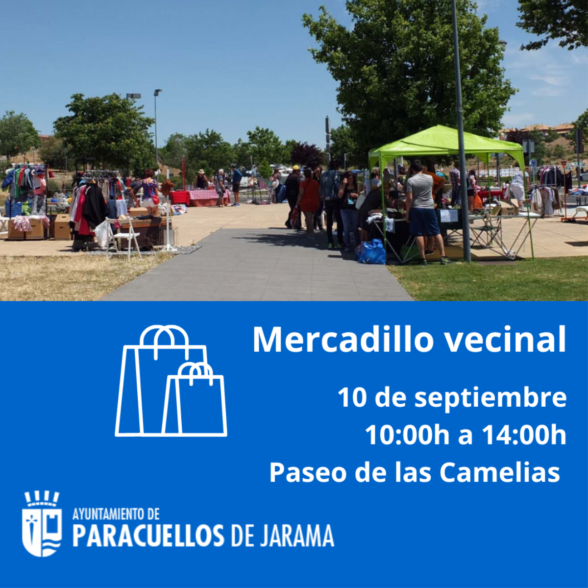El domingo 10 de septiembre es fecha clave para apuntar en el calendario, ya que tiene lugar una nueva edición del Mercadillo Vecinal organizado por el Ayuntamiento de Paracuellos de Jarama. La cita será de 10:00 a 14:00 horas, con ubicación en el parque público del paseo de las Camelias, frente al centro comercial Miramadrid.