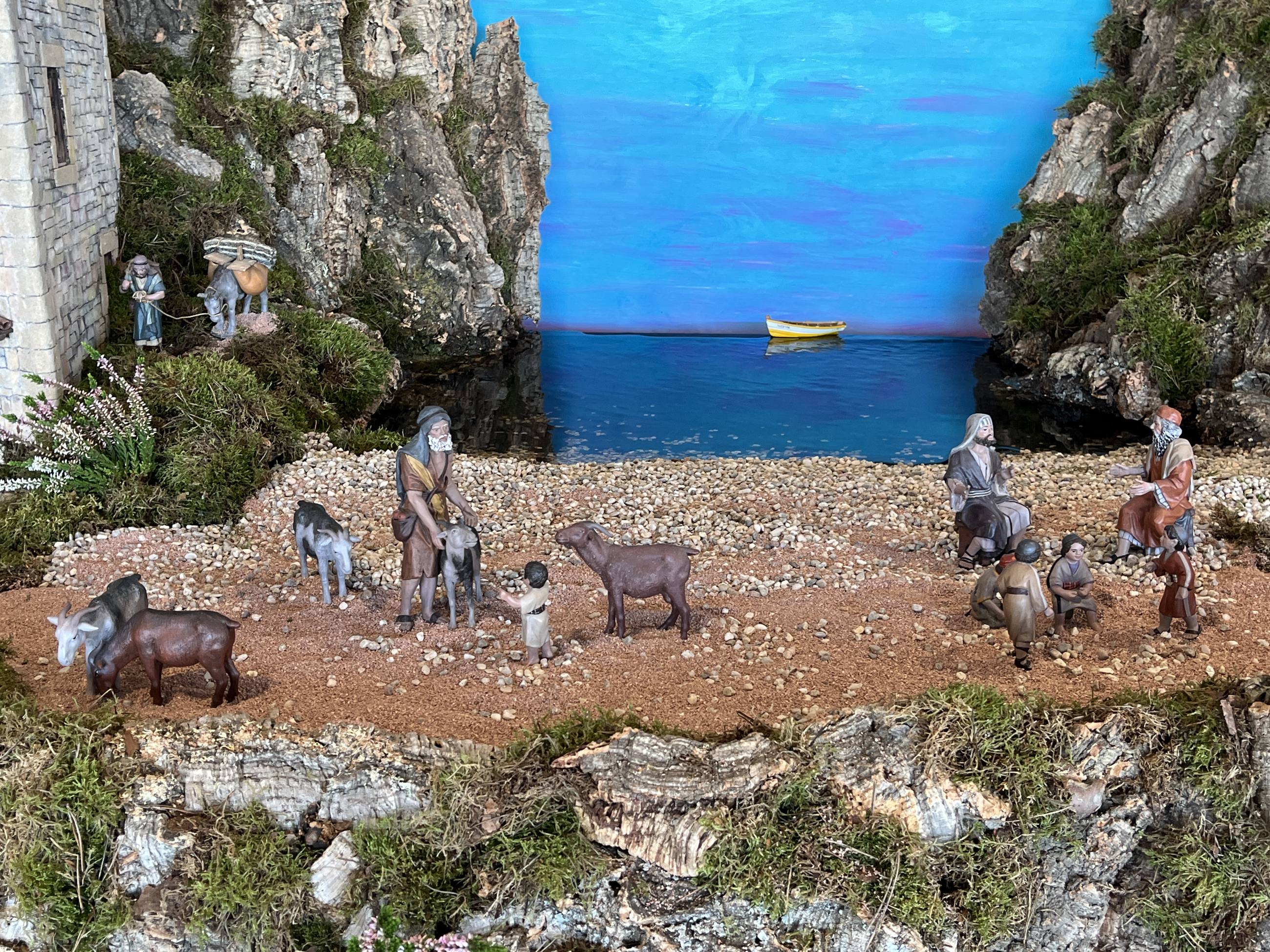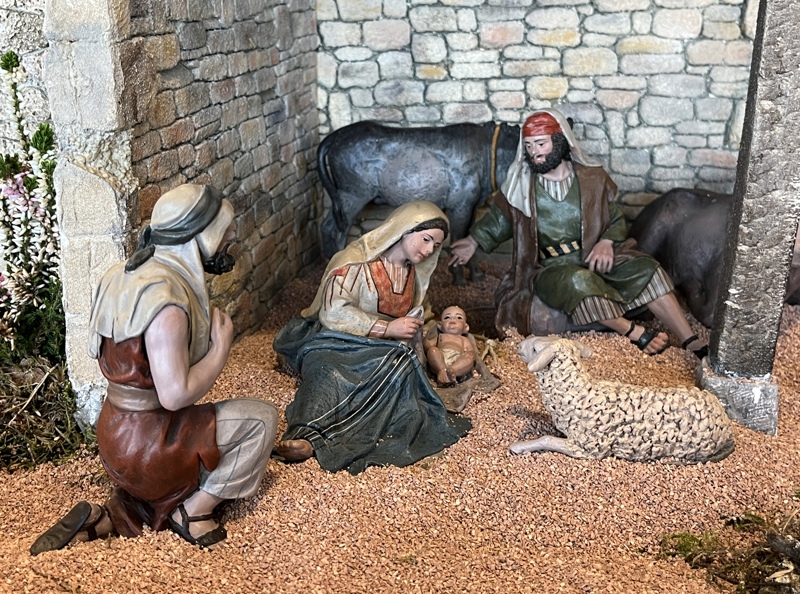 El Belén tiene una superficie aproximada de unos nueve metros cuadrados y la escenografía recrea un pueblo de montaña del norte de España. Representa varias escenas bíblicas de los hechos más significativos que rodearon la concepción y nacimiento de Jesús, por orden cronológico: