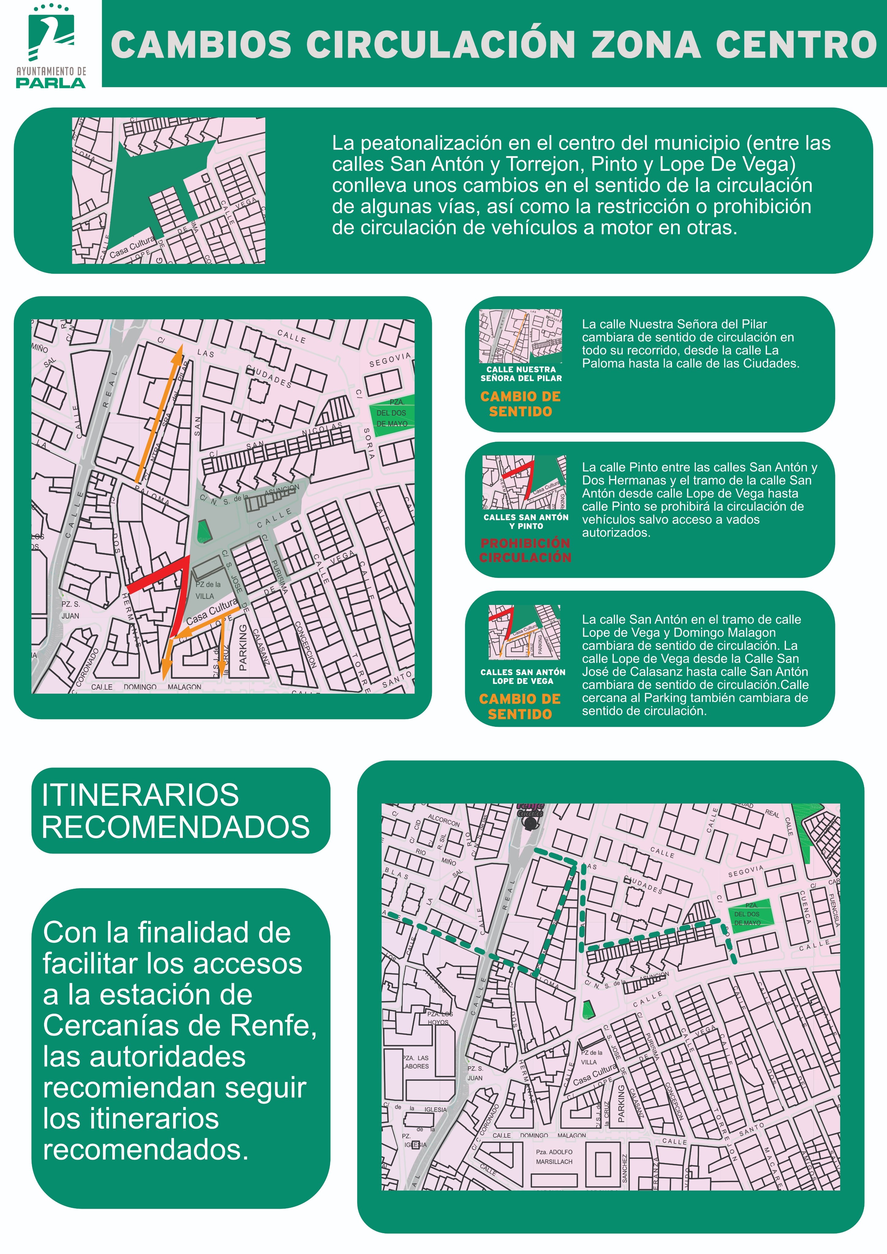 Este próximo lunes comienzan a aplicarse las modificaciones en la regulación y ordenación del tráfico derivadas de la ejecución del proyecto de reurbanización y peatonalización que se está ejecutando en el entorno de la Plaza de la Guardia Civil. Tendrán lugar en tramos de las calles Lope de Vega, San Antón, Nuestra Señora del Pilar y Pinto, y serán definitivas antes del 2 de diciembre. Todo ello conlleva unos cambios en el sentido de la circulación de algunas de dichas vías, así como la restricción o prohibición del tráfico de vehículos a motor en otras.