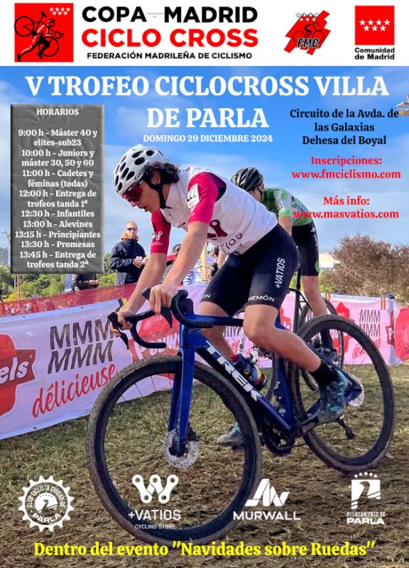 El año 2024 y la XX Copa Comunidad de Madrid de ciclocross vivirán su epílogo el próximo domingo 29 de Diciembre. El V Trofeo Ciclocross Villa de Parla será la última carrera ciclista del año en la región y será la 9ª y última puntuable del torneo, por lo que servirá para coronar a los mejores de la temporada ciclocrossista madrileña.