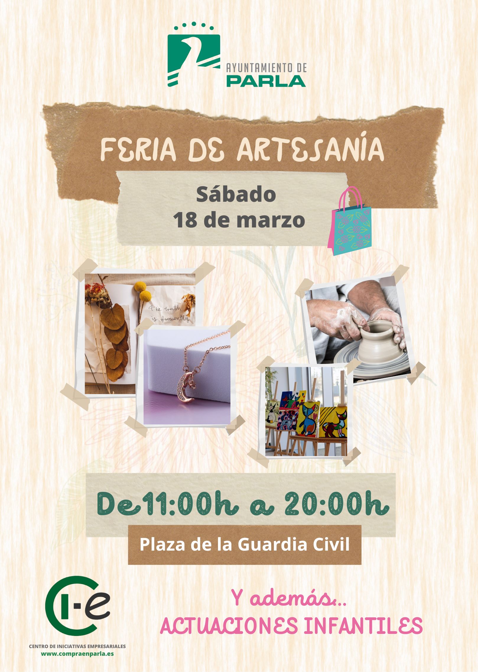 El Ayuntamiento de Parla celebrará la I Feria de Artesanía el 18 de marzo de 11:00 a 20:00 horas en la Plaza de la Guardia Civil. En ella participarán todos los comercios de artesanía de la ciudad que pueden solicitar su participación hasta el 28 de febrero.
