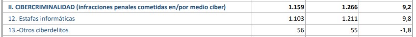 El caso de Parla no dista de la realidad que expone el Ministerio. En la ciudad, la ciberdelincuencia también aumenta en un 9,2% con respecto a 2023. En dicho apartado se recogen estafas informáticas que aumentan de 1.103 casos en 2023 a 1.211; es decir, un 9,8% más. Además, se tienen en cuenta otros ciberdelitos como amenazas, coacciones, extorsiones, daños informáticos, revelación de secretos o delitos contra la propiedad intelectual; en este escenario, en Parla caen dichos delitos en un 1,8%.