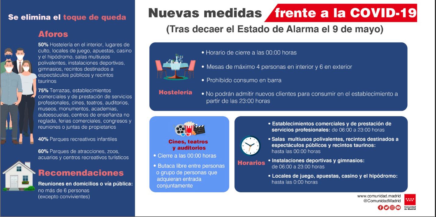 Después de que cayera el Estado de Alarma establecido por el Gobierno de España, las Comunidades Autónomas han tenido que establecer las medidas de obligado cumplimiento, así como las recomendaciones que los ciudadanos deben tener en cuenta para su propia seguridad y la del resto de la sociedad.