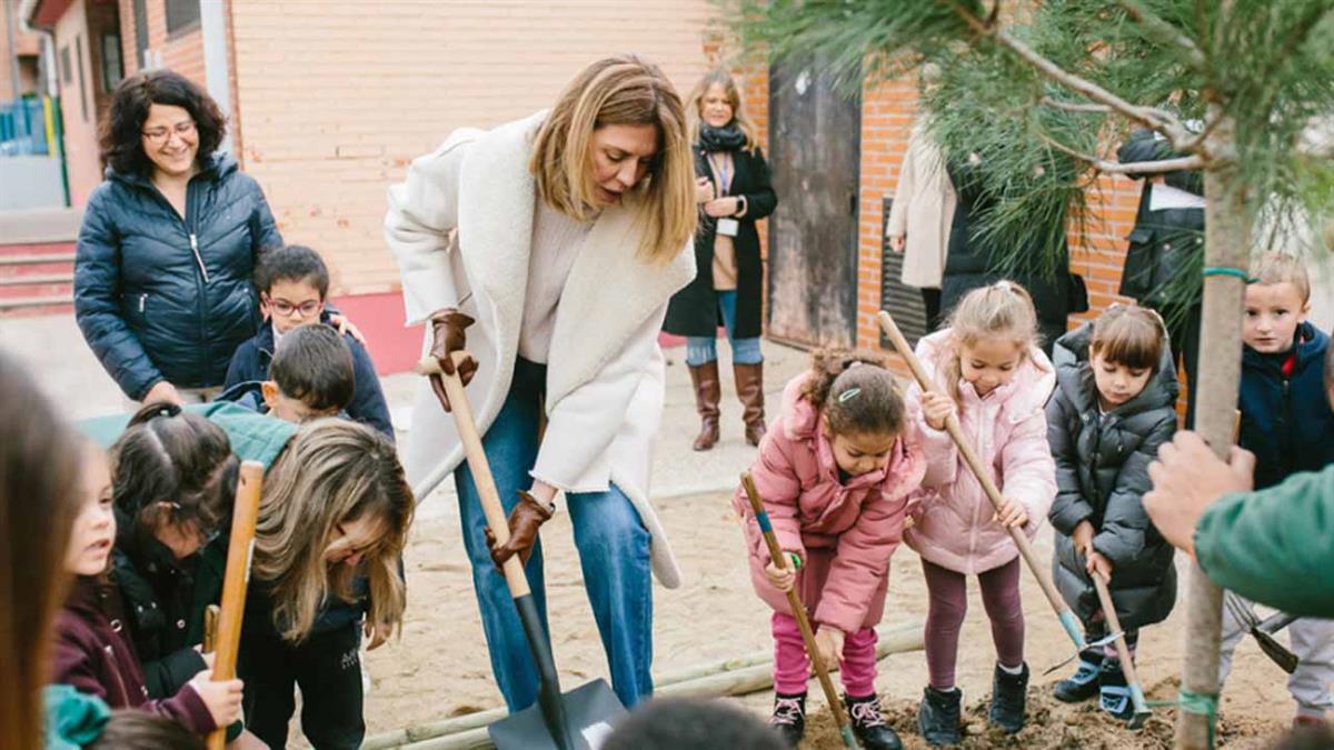 Por su parte, los alumnos del colegio Pinar Prados de Torrejón, también han llevado a cabo este lunes una plantación de otros 16 ejemplares con los que mejorarán el exterior del centro y recuperarán un área de sombras y vegetación.