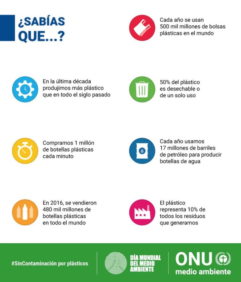 Este año el mensaje de la ONU se ha centrado en la reducción del consumo de plástico, celebrando el día bajo el lema “Un planeta #SinContaminación por plásticos”