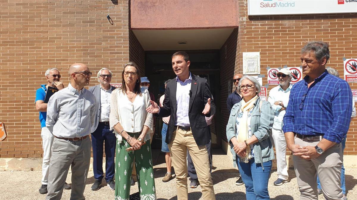 Juan Lobato, Secretario General de los Socialistas junto con los concejales de PSOE de Pozuelo, Helio Cobaleda, Ángel G. Bascuñana, y Ana Hernández, han acudido al Centro de Salud de la calle Emisora, de Pozuelo de Alarcón para denunciar el cierre de los 20 SUAPs (Servicios de Urgencia de la Atención Primaria) que la comunidad anunció la semana pasada.