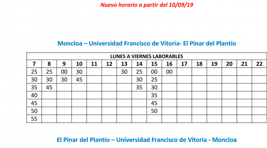 La línea 659 “Madrid (Moncloa)-Universidad Francisco de Vitoria- El Pinar del Plantío triplica su frecuencia y conecta conecta a los vecinos de pozuelo con el intercambiador de Moncloa en menos de 20 minutos, así los vecinos de Monteclaro, los estudiantes de la Universidad Francisco de Vitoria y los alumnos de la fundación Gil Gayarre son los máximos beneficiarios de este nuevo servicio que ahora permite llegar al capital más rápido. La alcaldesa, Susana Pérez Quislant, ha explicado que "con esta ampliación de la frecuencia que ha sido posible gracias a la labor del Ayuntamiento y el Consorcio Regional de Transportes“ damos respuesta a una demanda de vecinos y estudiantes de la ciudad y mejoramos también la conexión con Madrid y Majadahonda.
