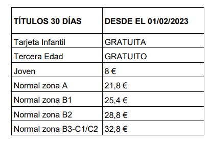 El abono para mayores de 65 años es gratuito desde el 1 de enero de este año. Desde la puesta en marcha de esta gratuidad y durante el primer mes y medio de aplicación, se han cargado un total de 784.257 títulos y emitido 36.156 nuevas tarjetas personales. Además, en este mismo periodo se han realizado más de 20 millones de viajes en todo el transporte público en la región. La tabla detallada con los precios desde 1 de febrero es la siguiente: