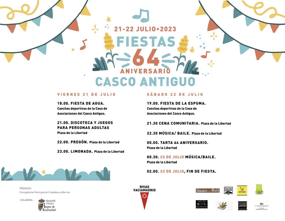 ¡El Casco Antiguo de Rivas cumple 64 años! Y, como homenaje, el municipio celebrará una gran fiesta para conmemorar esta cifra. De hecho, no es la primera vez que la localidad celebra ‘su cumpleaños’. Cada año, ripenses de todo el municipio se suman a los festejos que recuerdan cómo empezó a despegar esta ciudad, que ya ha rebasado los 100.000 habitantes este 2023.