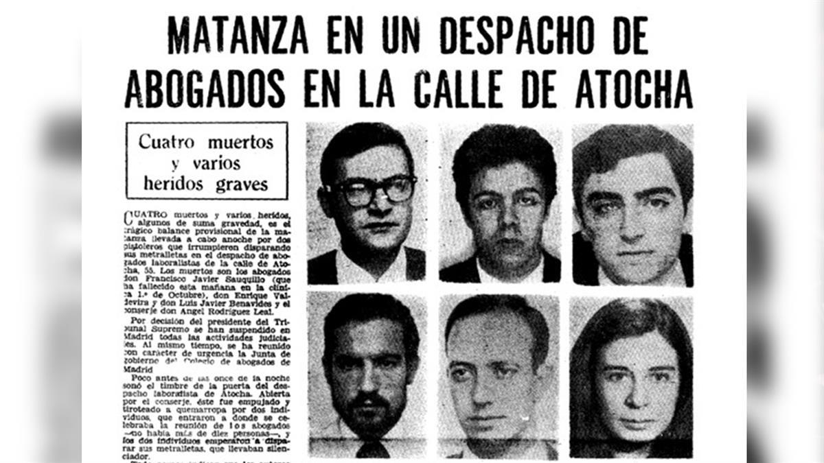 Además de los tres abogados laboralistas (Enrique Valdelvira Ibáñez, Luis Javier Benavides Orgaz y Francisco Javier Sauquillo) pertenecientes al Partido Comunista de España y a Comisiones Obreras, fueron asesinados un estudiante de derecho (Serafín Holgado) y un administrativo (Ángel Rodríguez Leal). Los hechos sucedieron en el despacho de abogados en el que trabajaban, situado en el número 55 de la calle de Atocha.