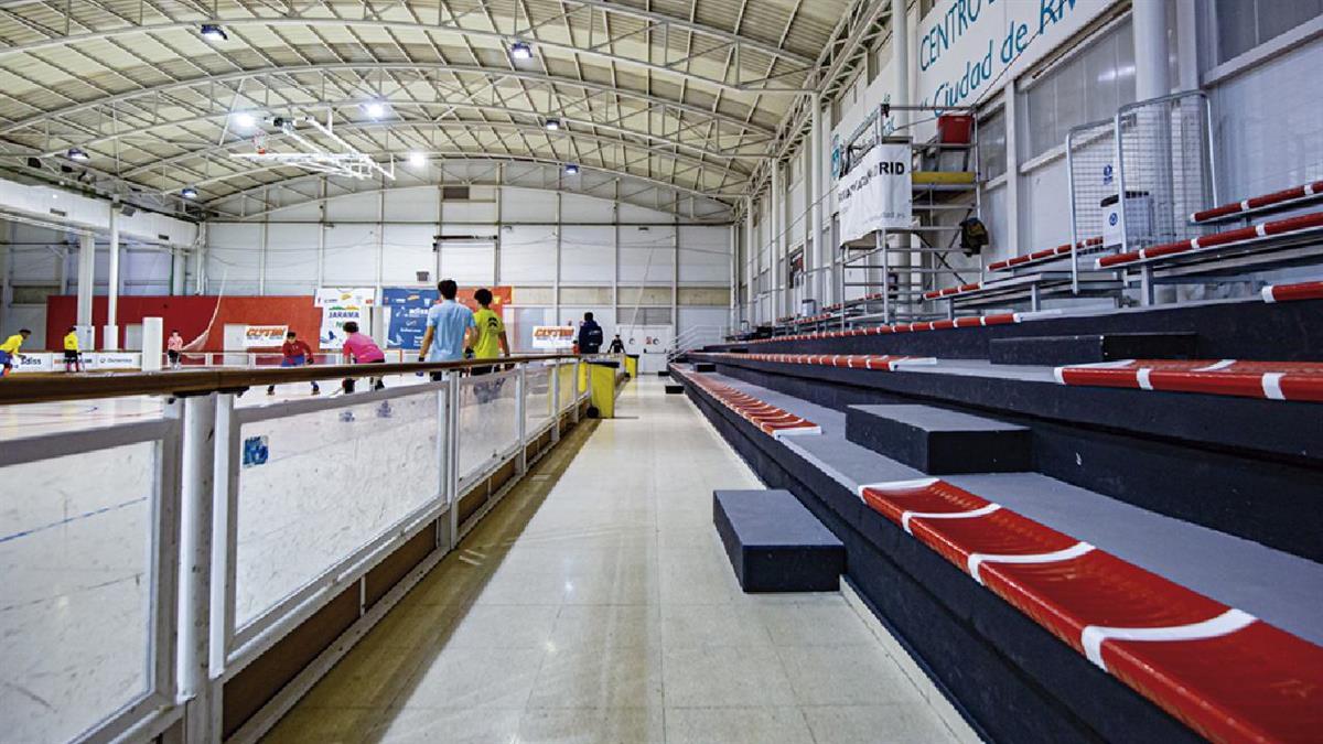 La grada se despliega a lo largo de uno de los laterales del pabellón, que cuenta con dos espacios de juego: el más próximo a la grada es el que utilizan los equipos de hockey de Rivas Las Lagunas. El equipo sénior juega esta temporada en la máxima categoría estatal, la OK Liga, donde se mide a gigantes del stick como el FC Barcelona, Liceo (A Coruña) o Noia (Barcelona). Con la ampliación de butacas, las aficiones ganan en comodidad. La otra pista del pabellón se emplea para el patinaje artístico sobre ruedas.