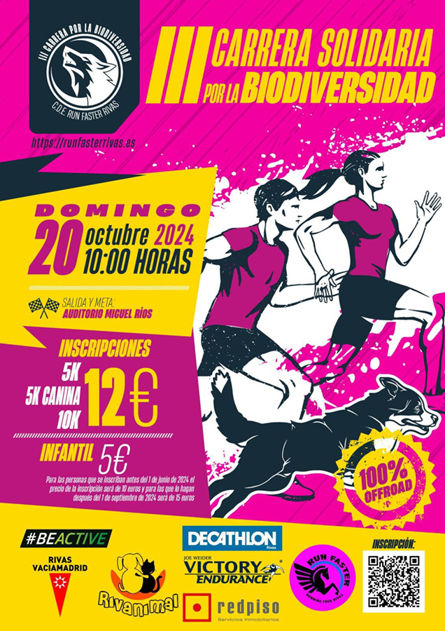 La Carrera por la Biodiversidad, que además tiene un fin solidario, celebra su tercera edición el domingo 20 de octubre (10:00), con salida y meta en el auditorio Miguel Ríos y contando con cuatro categorías: 10 kilómetros, 5 kilómetros, 5 kilómetros canina y 300 metros infantil.